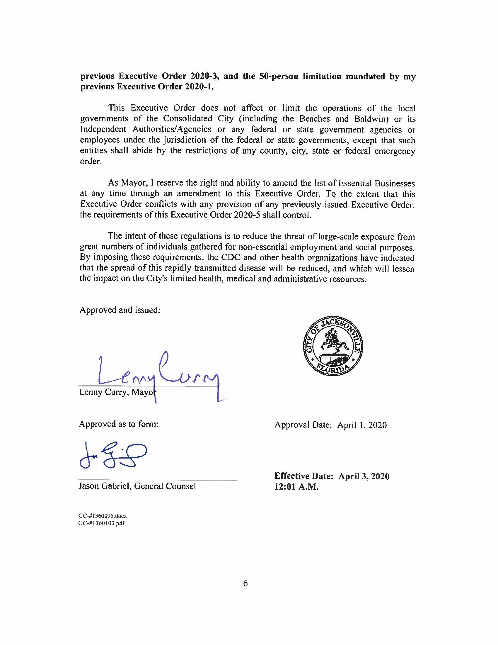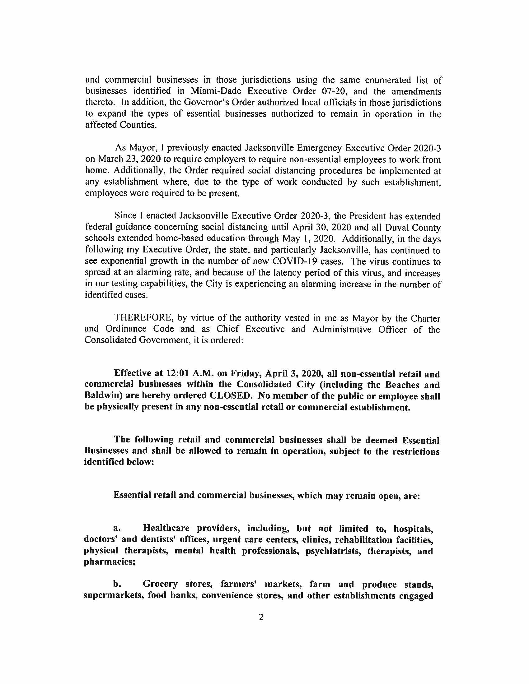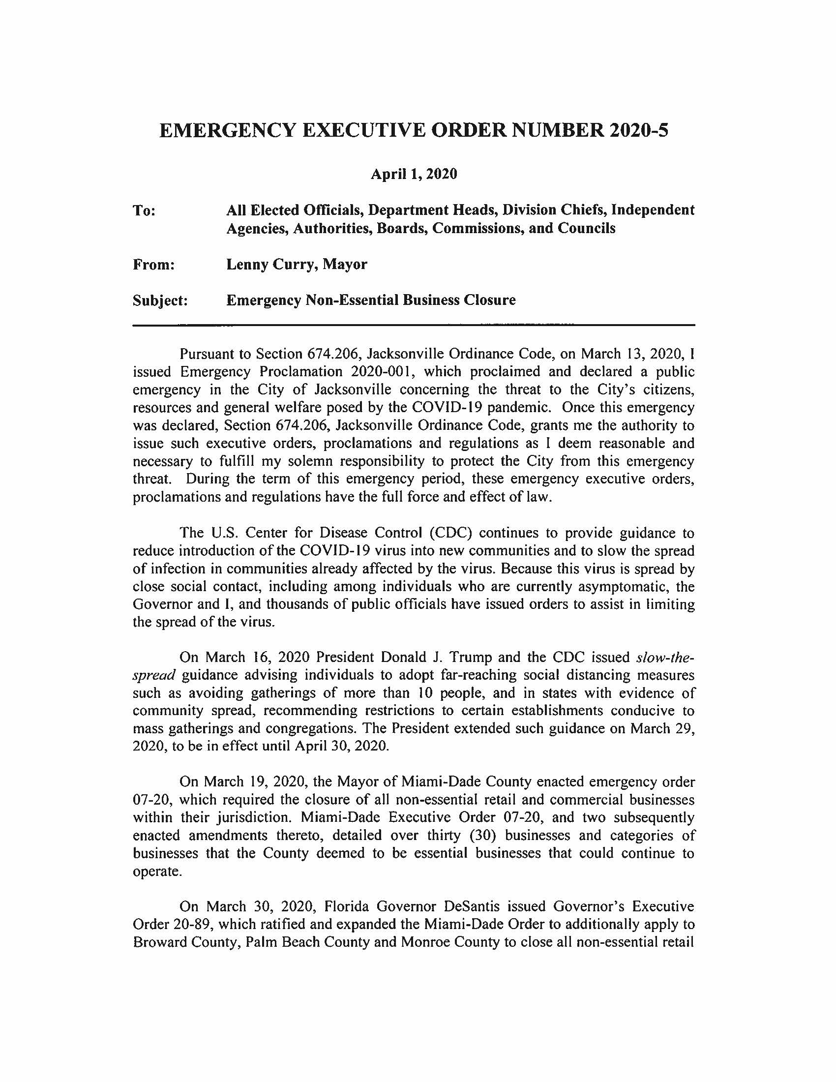 01 Apr Mayor Lenny Curry Orders All Non-Essential Businesses Closed