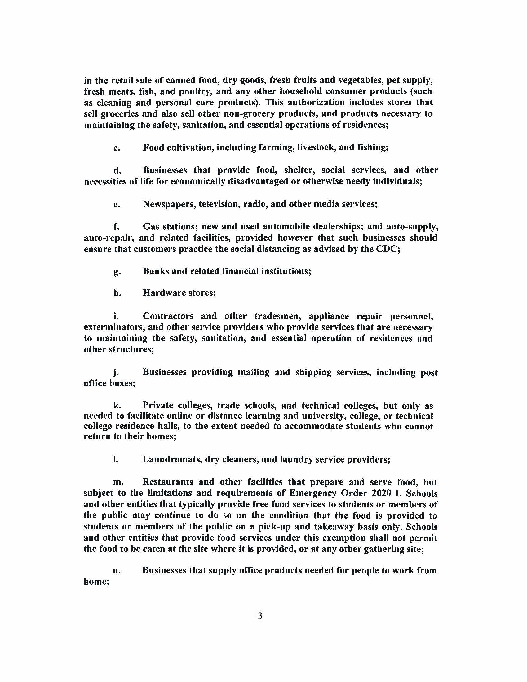 Beginning this Friday, April 3, 2020 at 12:01 a.m., all non-essential businesses are ordered to be closed to customers and employees. Read the full Executive Order below to see what businesses are deemed “essential” and can remain open.